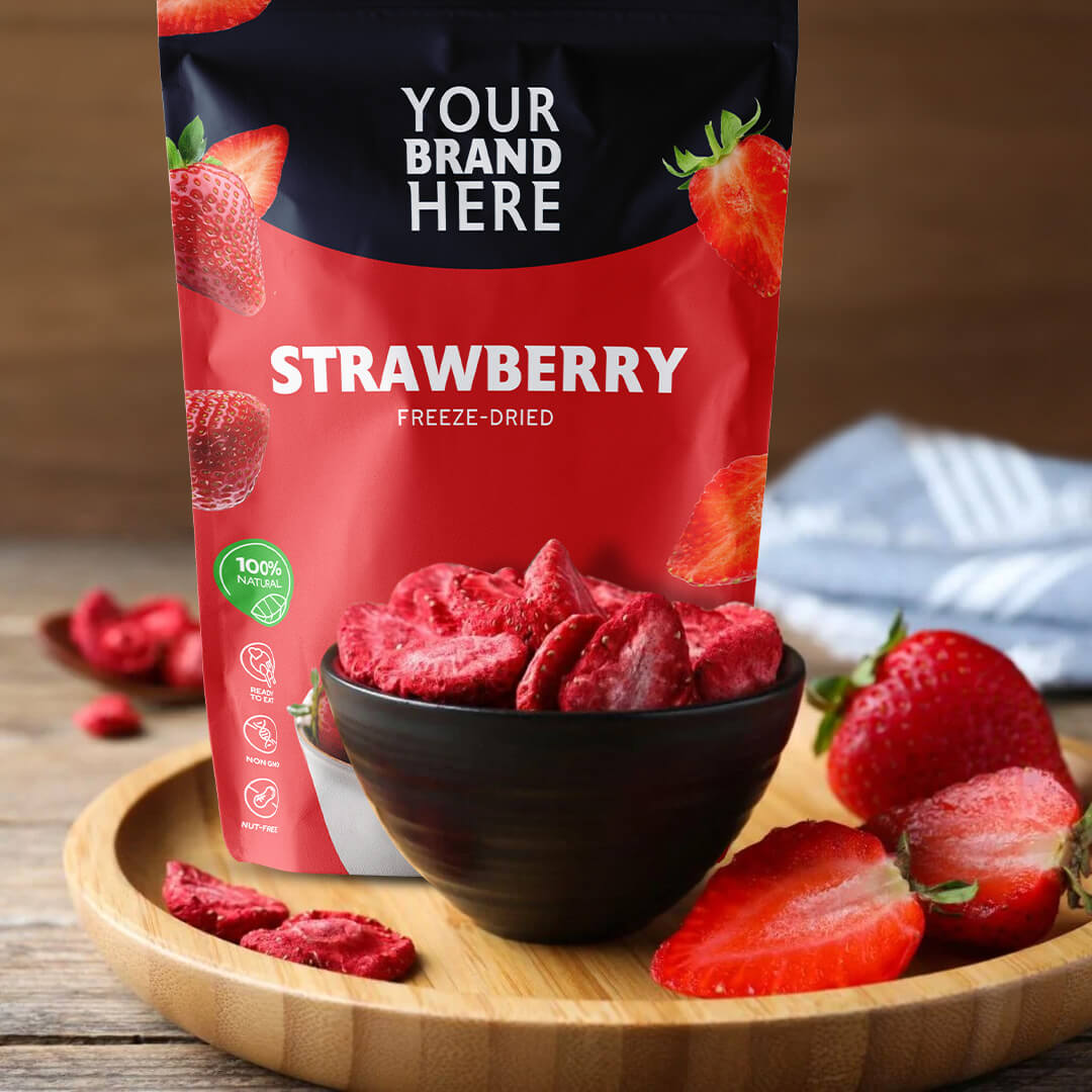 Frutas cosechadas en su punto justo de madurez, liofilizadas para preservar su color, aroma y textura.